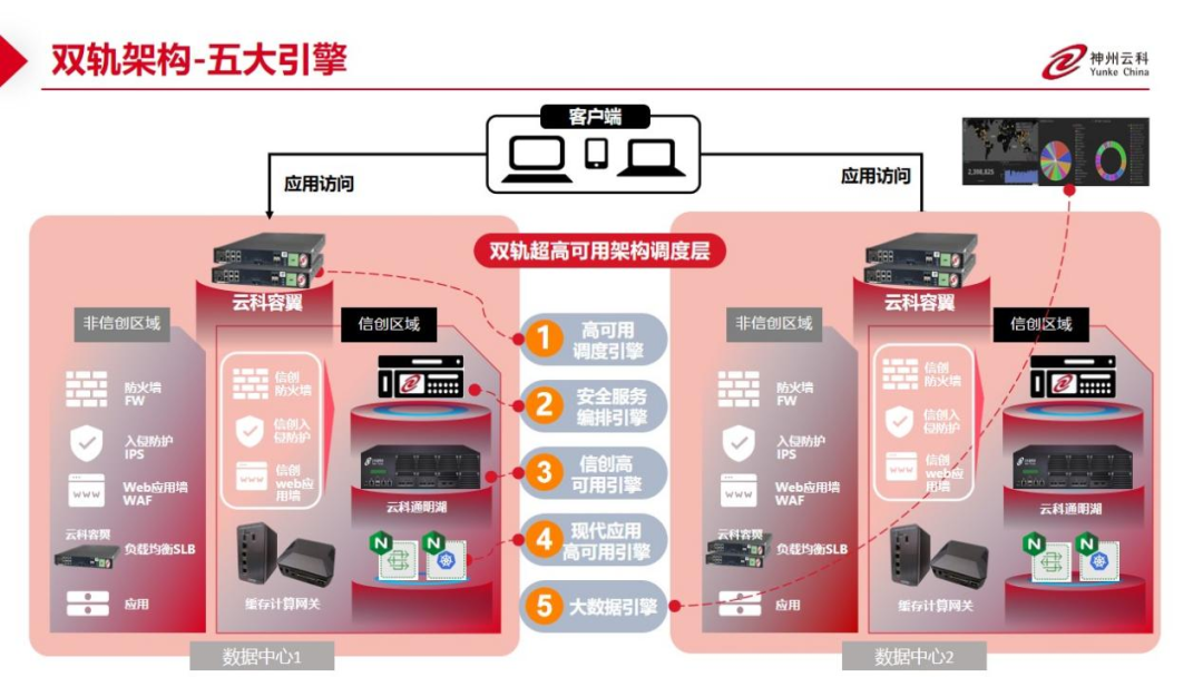 数据中心架构在自主创新的过程中分解为现有架构的非信创区和信创区的两个业务区域,在每个数据中心分为信创区和非信创区后,在两个区域之间的跨区跨域协同方法,神州泛亚电竞通过5大引擎实现多层次的应用可持续性实践。