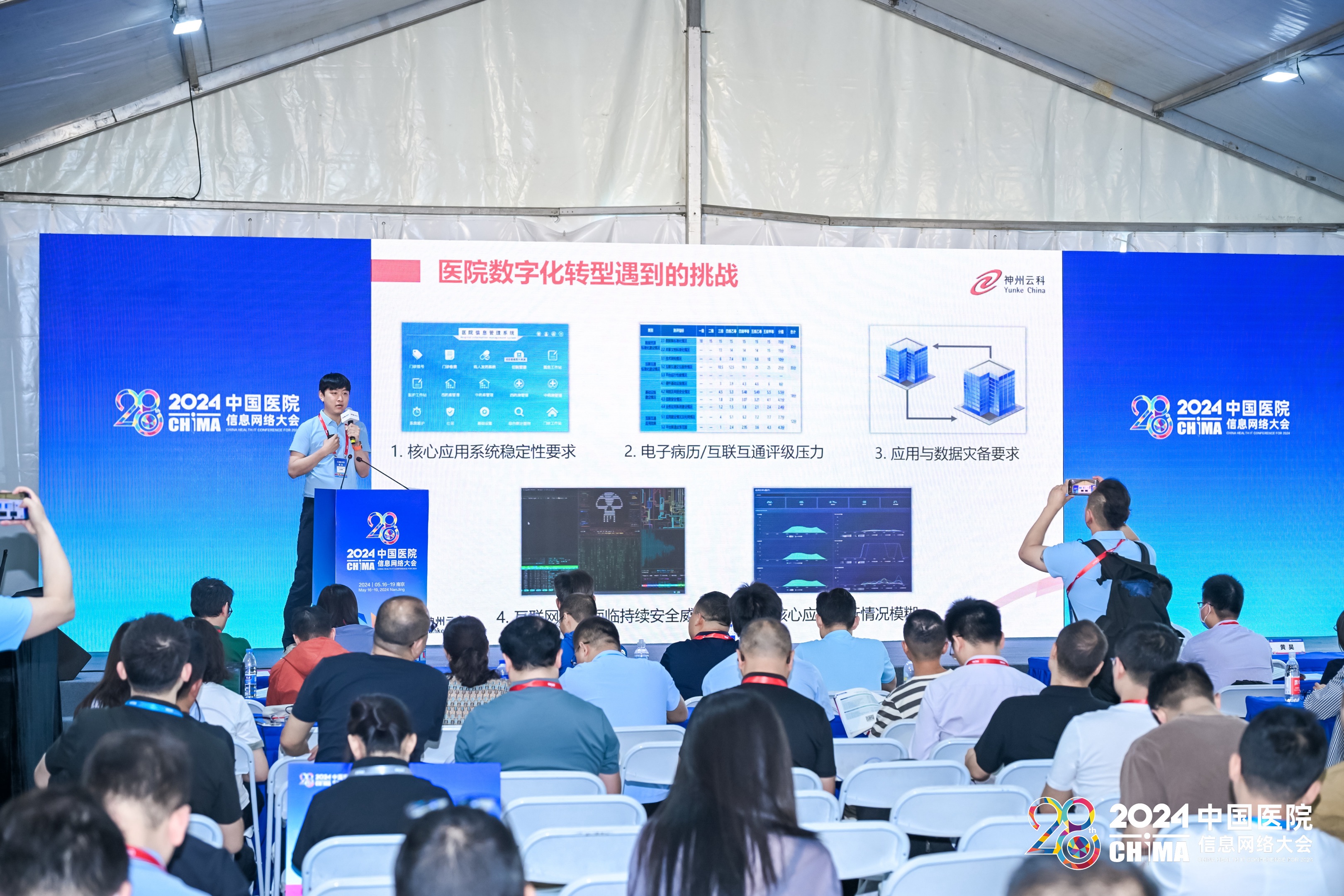 2024年5月17-19日,第28届中国医院网络信息大会(CHIMA2024)在南京圆满落幕。本次大会以新质生产力理论为指导,以深化应用,融合创新,用信息技术赋能医院高质量发展为主题,邀请国家卫生健康委相关司局领导、两院院士、国内外医疗卫生信息化领域知名专家学者、领军人物做主旨报告。在这场医疗信息化的年度盛会上,神州泛亚电竞会上携其“保障医院核心系统健康无虞”主题演讲精彩亮相,成为展会的一大亮点。